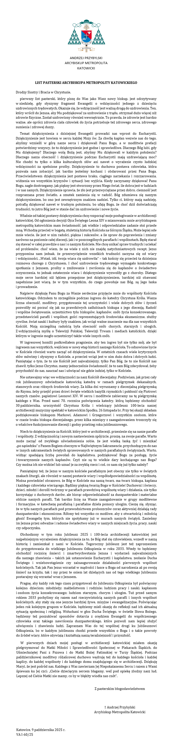 LIST PASTERSKI ARCYBISKUPA METROPOLITY KATOWICKIEGO